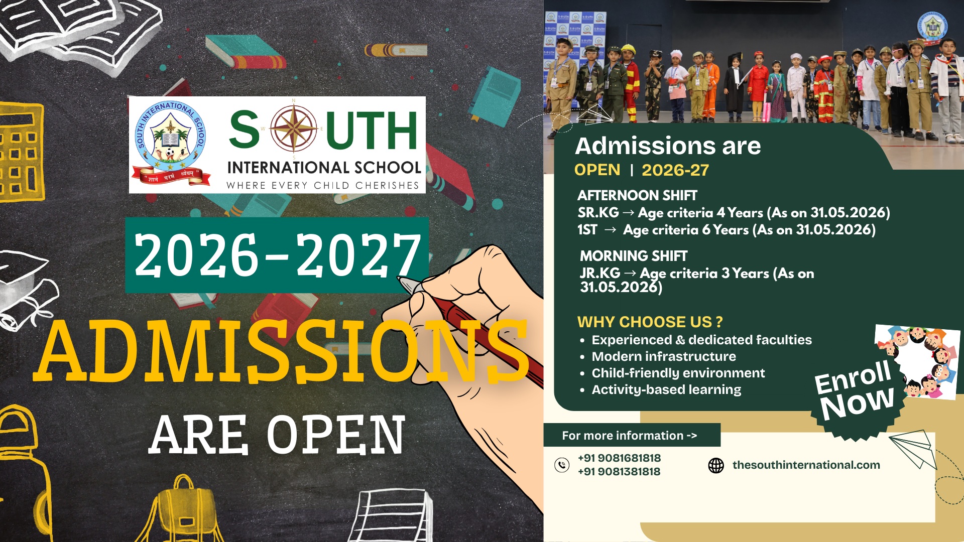 As it says “Education is the most powerful weapon which you can use to change the world” . The South International School tries its level best to instill the young brains with knowledge along with ethics sense as well as emotions. The school is well equipped with all the facilities where a child can perform to his/her maximum potential.